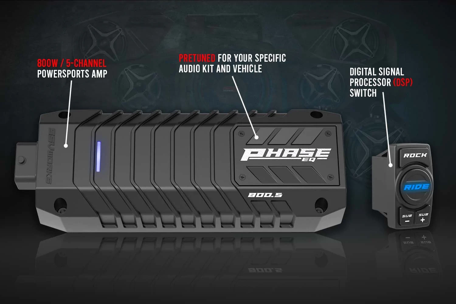 Rock ‘N Ride: Our patented new switch comes with every Phase EQ amplifier. It fits in your standard rocker-switch location and allows you to switch between multiple audio profiles.