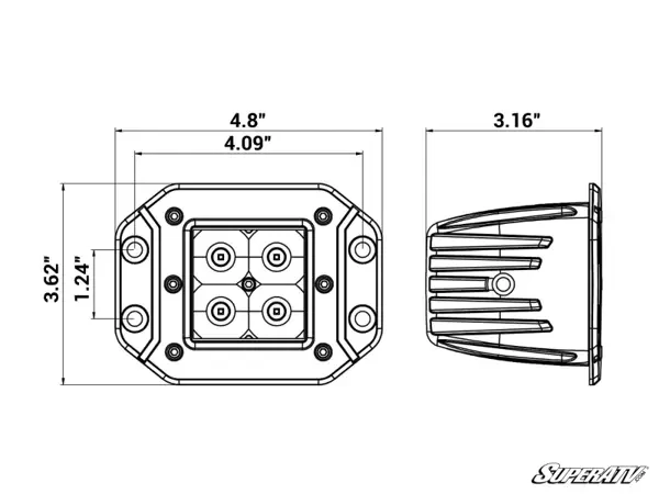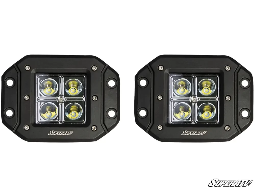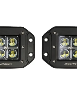 Whether you’re night riding or working late, these cube lights provide a surprising amount of illumination using only 12 watts of power. Constructed of diecast aluminum alloy, each box contains two 3″ lights with 4 LEDs per unit. They’re easy to install and the compact size allows you many options for where to recess mount them.