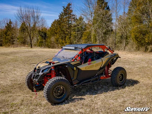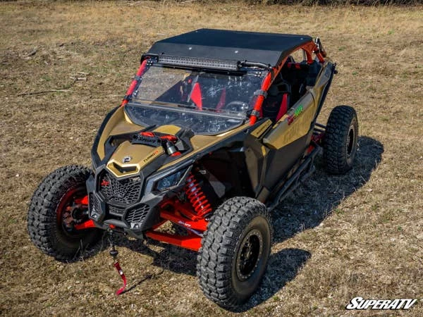A low-profile flat-top Maverick X3 with the professional finish of an aluminum roof is sure to make it stand out from the crowd. Cruise through the trails, keep the sun out of your face, and look good under your new roof and chopped-cage-style UTV look.