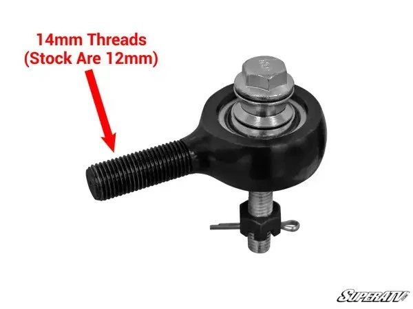 These steel swaged tube tie rods are lightweight but super tough. The flared-out, swaged design boosts the strength of the 7/8” diameter tubing. They’re bolstered with better tie rod ends too. They have huge 16 mm rack threads and 14 mm rod threads making them the toughest in the industry. They’ll keep you on track where others fail.