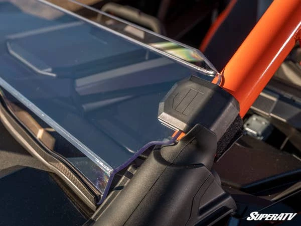 Nothing beats a comfortable ride in the summer air. Feel the breeze flowing through your cab without it hitting your face. SuperATV’s RZR Pro R Half Windshield matches the contours of your machine for a perfect fit and added style.