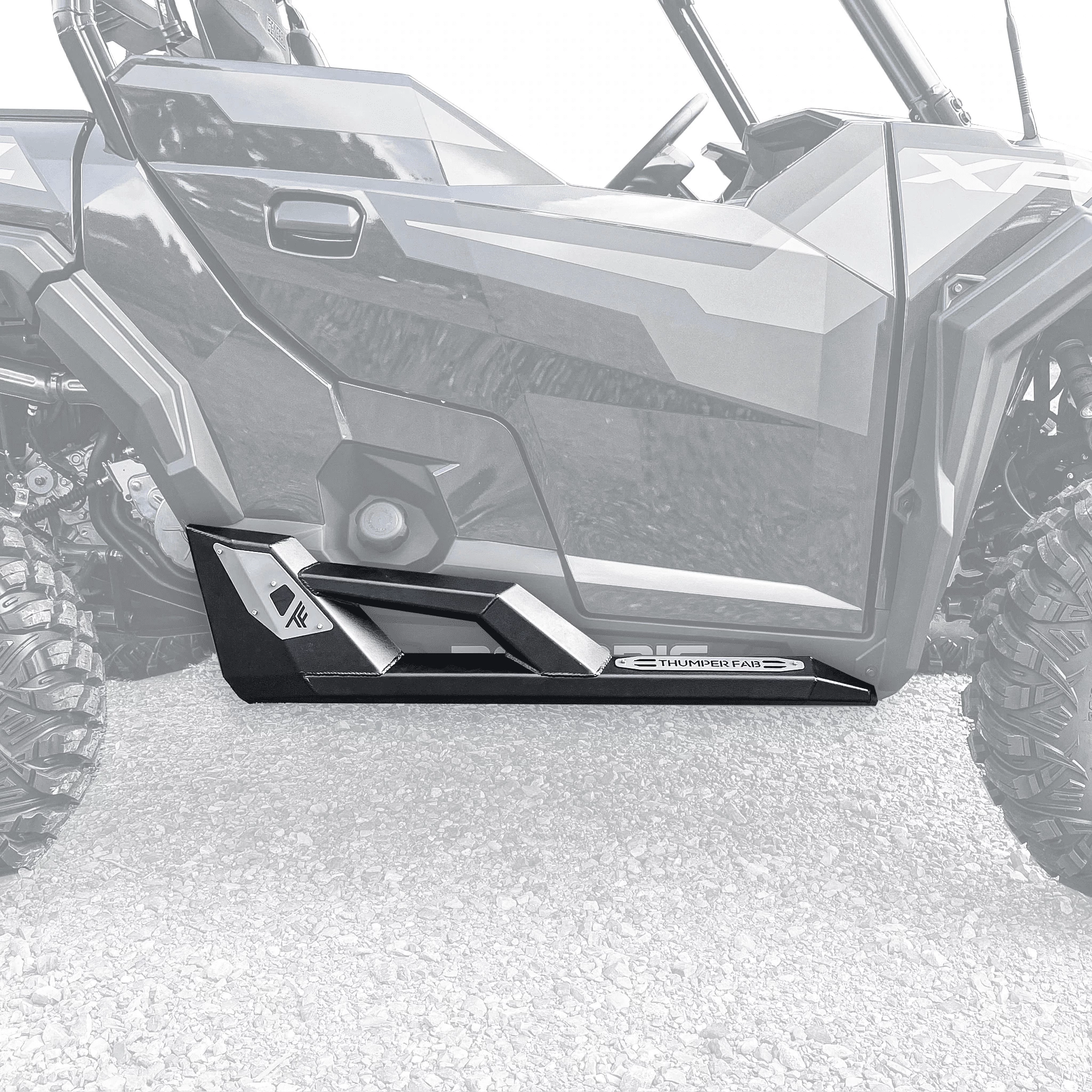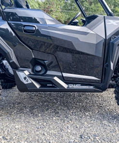SLEEK, BOLD, & AMAZING PROTECTION. These nerf rail rock sliders for your Polaris General 1000 and XP 1000 2-Seat, give you the streamlined look and strength you need. With a awesome look like it should have shipped with the UTV. Great for accessing your Thumper Fab roof rack or protecting your General from brush and trail debris. Their is simply no other nerf rail like these for your SXS. Forged by American hands from steel made right here in the good ole U.S.A.! These bad boys are stout! Great protection against trail obstacles from contacting the OEM doors and plastic rocker panels.