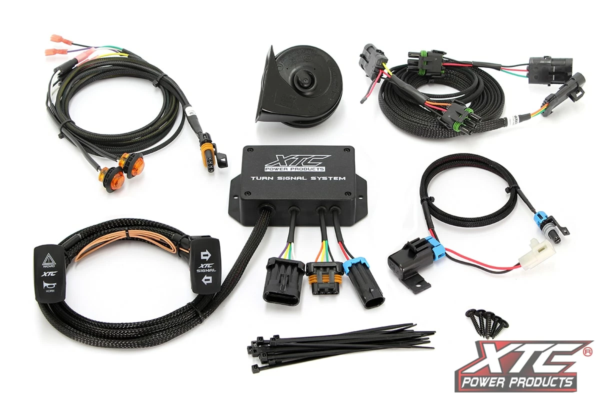 XTC Power Products Leads the way in UTV wiring. Installing turn signals on a UTV is easier than ever with our Plug and Play Turn Signal System for the Can-Am Maverick X3. The TSS (Turn Signal System) consists of a relay control box and horn that mounts under the hood and turn signal, and custom hazard/horn switches that mount in the dash. A supplied vehicle-specific rear harness integrates into the Can-Am Maverick X3s OEM taillights converting them to turn signals.
