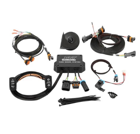 XTC Power Products Leads the way in UTV wiring. Installing turn signals on a UTV is easier than ever with our Plug and Play Turn Signal System for the Polaris RZR Turbo S. The TSS (Turn Signal System) consists of a relay control box and horn that mounts under the hood and turn signal, and custom hazard/horn switches that mount in the dash. A supplied vehicle-specific rear harness integrates into the Polaris RZRs OEM taillights converting them to turn signals.